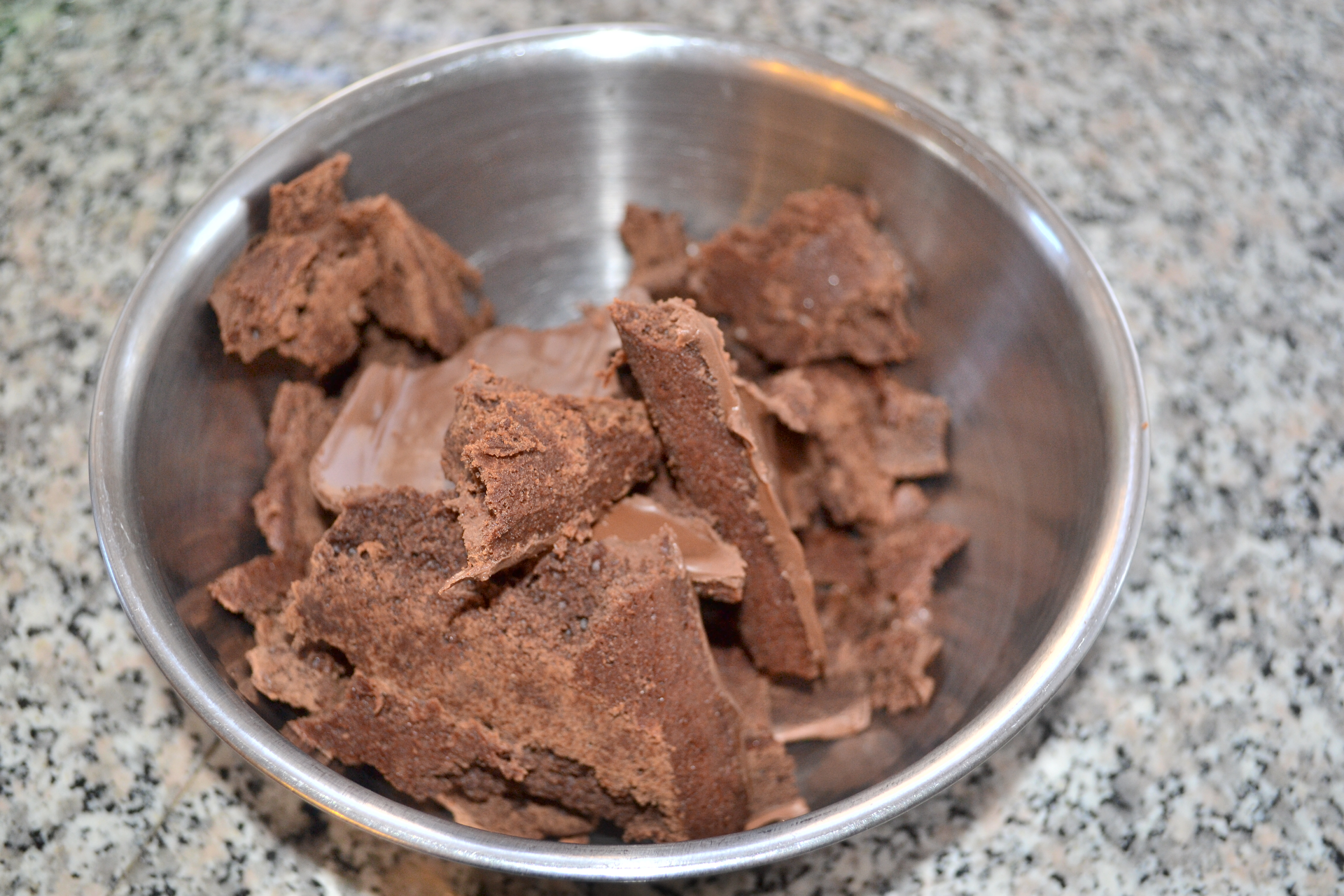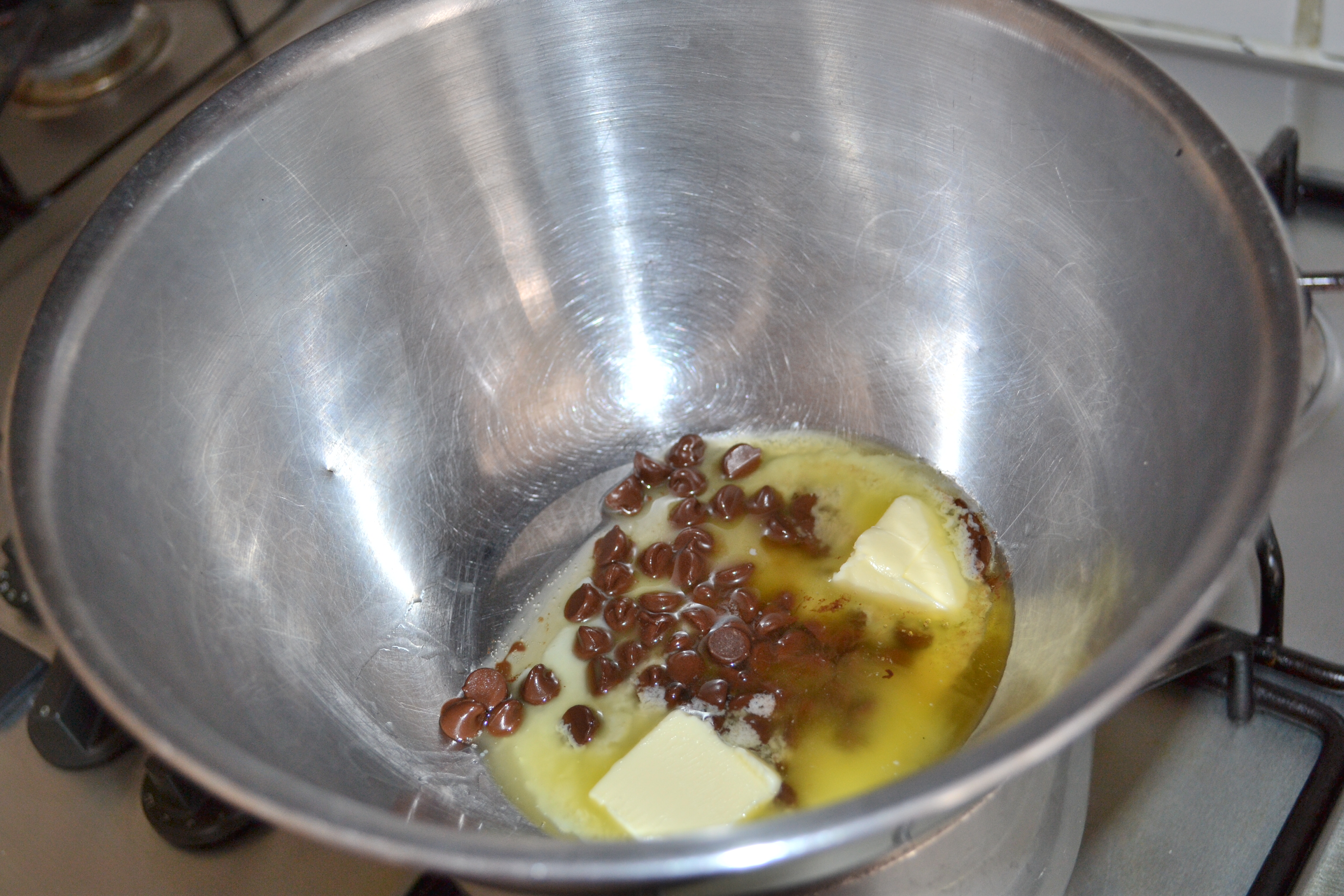 I started by melting some semi-sweet chocolate chips and butter in a double boiler.