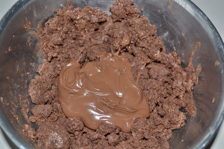 Mix in just enough Nutella so that the brownie stuff is at a good rolling consistency.