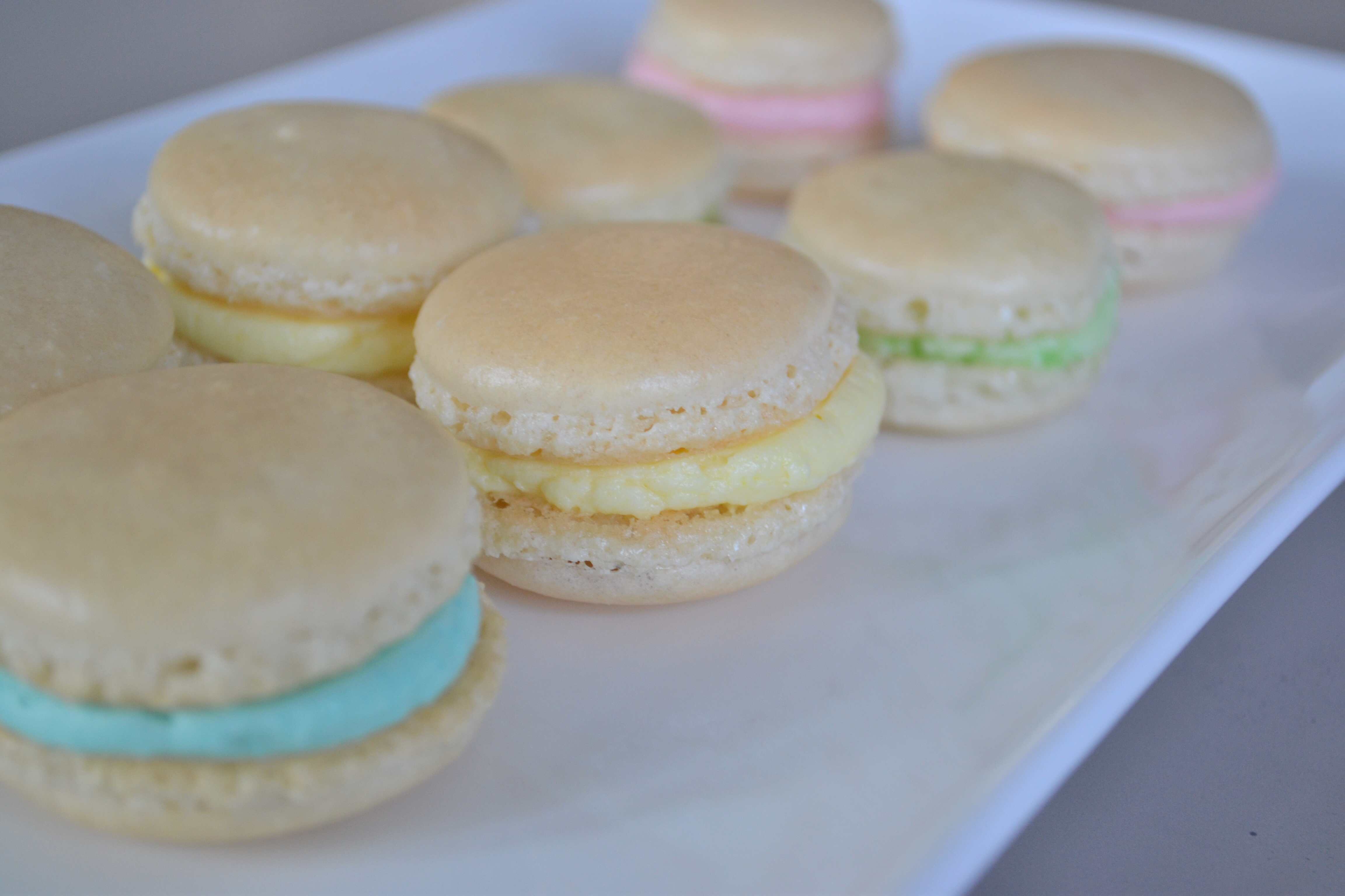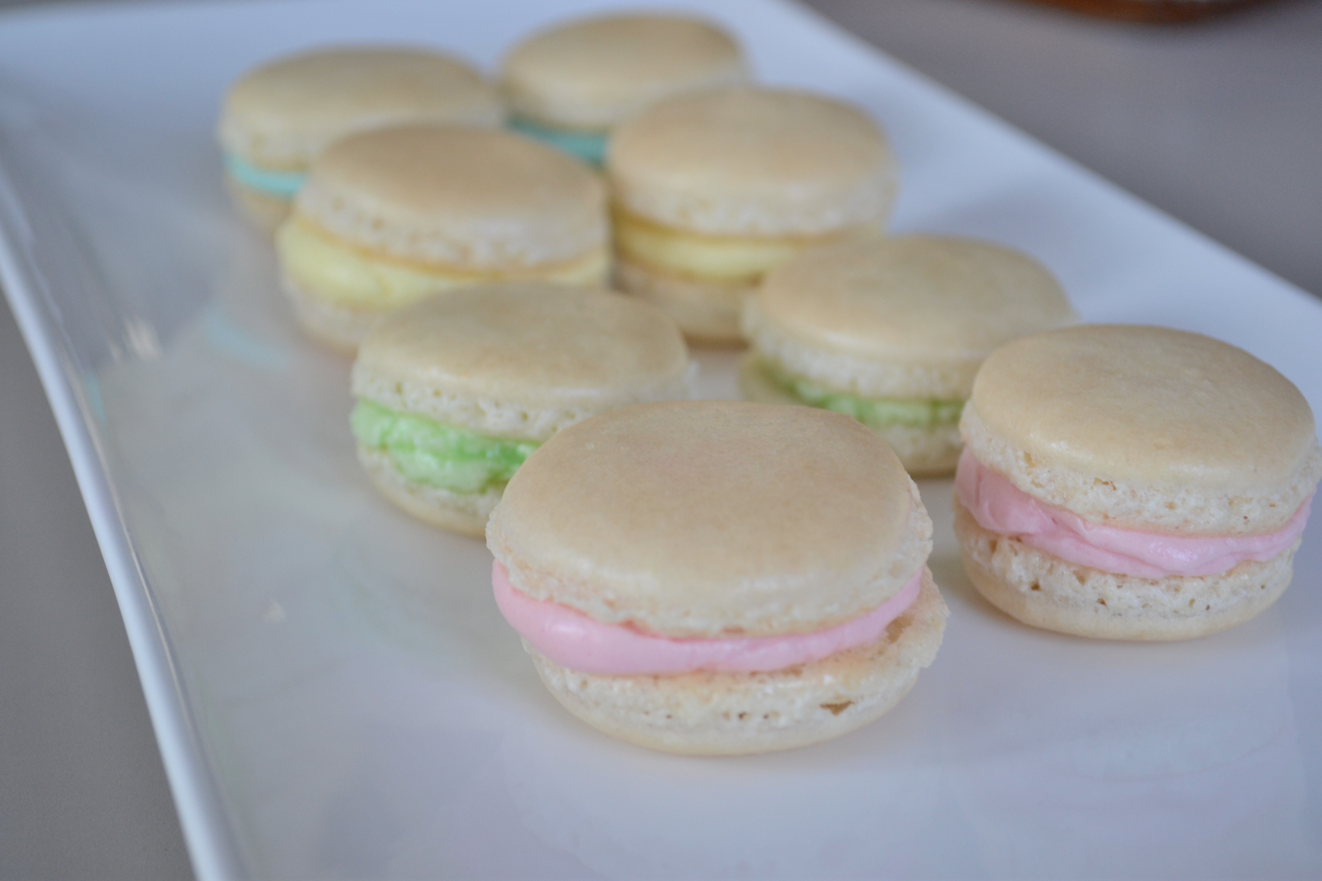 So after I finished all these macarons, I started making the vanilla butter cream – also pretty easy, just got sort of complicated when I decided to use four different coloured buttercreams with one piping bag.