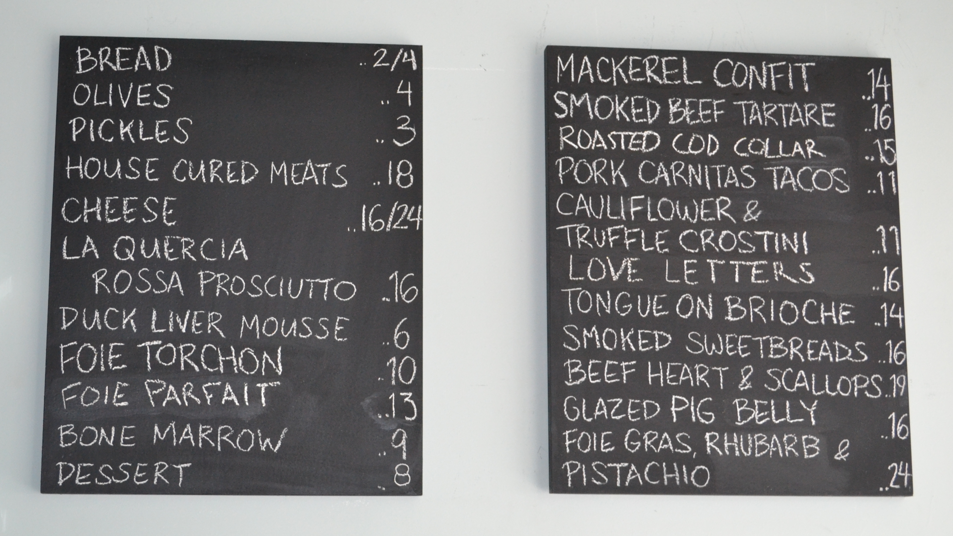 When we walked into the restaurant, the first thing I noticed was the chalkboard displaying the menu — lots of crazy stuff going on here, except don’t expect detailed descriptions of any of the dishes.